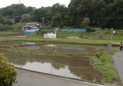 6月10日(時の記念日)、ちょっと歩きました。40分コースです。 途中、えらいことに気がついたのです。 古沢から、蛙のコーラスが聴けなくなる〜ッ!! 一回りして、水田が残っているのは、たった2箇所だけ! 中間に一箇所、最下流に一箇所。あわせて2反弱。(1反=991.7平方米) えらい減りようです。時代とともに、このあたりからも消えていくのでしょうか? ひとつに、新百合ヶ丘の山の切り崩しで出た土が、無料で・・・というのも 効いているようです。昨秋、田んぼで話を聞いたおじさんが言っていた 「米つくりも今年までだねえ・・・」というのがほんとになってしまいました。 住んで足かけ4年目ですが、環境のよさに愛着が沸いているのに。 最下流の田は、そのおじさんの田で、「麻生区こども会」が米作りをするそうです。 中間の田は、すでに田植えが終わっていました。 田んぼは両方とも何時もの道からちょっと離れているので ”蛙の唄”はまず聞こえないでしょう。 いいものが消えていくのは、寂しいものです。