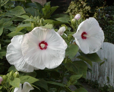 6月30日(水)初めて,生れて初めて、カレーを作りました。 「えッ」と驚かれる方もいらっしゃるかもしれません。 でも56年の長きに渉って(台所のお手伝いをし始めるのを10歳ごろとして) 「私、食べる人。貴方、作る人。」で来てしまったので、ほんとに初体験なのです。 なるべく簡単に、ということでルーを買い,2種類混ぜました。 レシピをちらと見たので、玉葱をミジン切りにして、暫く炒めました。 狐色までは行かなかったのがチョト残念。ですが後は、肉と野菜を炒めて 鍋で一緒に煮る。 持っているありったけのスパイスをぶち込んで・・・ ま、出来ましたよ。でもレシピを見て思いました。 これだけのスパイスを入れて作るのでは,物凄い種類のカレーが出来るな〜、と。 世界中の人が”せーのッ”で作ったとしても、同じ味は、無し! 仮に美味しいカレーを作ろうとしたら、こりゃもう、えらく大変だろうなあ、と考えました。 冷凍して、時々食べてます。何食つくったか、ッて?ええ,約10食。 今年も又咲きました、駐車場の隅に、あのむくげ(槿)が。 本当に感激しますよね、毎年まいとし。手のひらを当ててみるとほぼ同じ、約22センチ。 僕のいるアパートは、総勢5人しか住んでいません。 どうか、見てやってください。ことしは真っ白、でした。昨年はピンクだったんですよね。 14日の夜も寄って見ましたが(下田も中田も)未だ音無し、です。残念。 あれから(日記・7月5日)、3度は寄ってますけど・・・