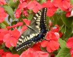 中禅寺湖畔の喫茶店の、花の蜜を吸いに来た「キアゲハ」を撮りました。