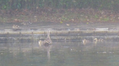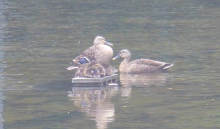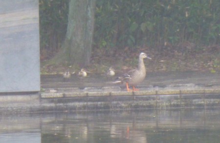 多摩シャンソン発表会のリハーサルの昼食どき。レストラン トレーノノッテから多摩中央公園のプールのかる鴨を。