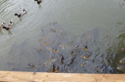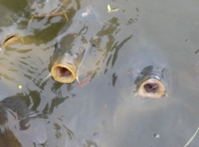 餌を貰いつけている鯉たちが、目の下に。(まさか自分が大口を開けなければならないとは、知る由も無かった・青木歯科で次の日。)