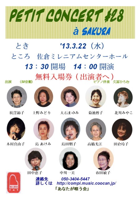 プテイコンセール in SAKURA・#28のご案内。3月22日(金)佐倉ミレニアムセンターホール
