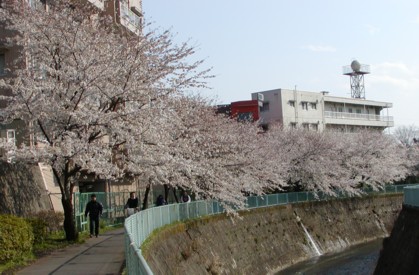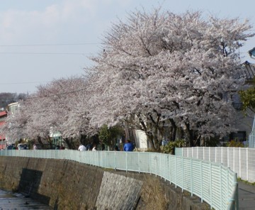 元住居の裏・麻生川下流(南)を見る(柿生・4月6日)