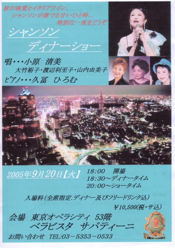 シャンソン デイナー ショウのお知らせ