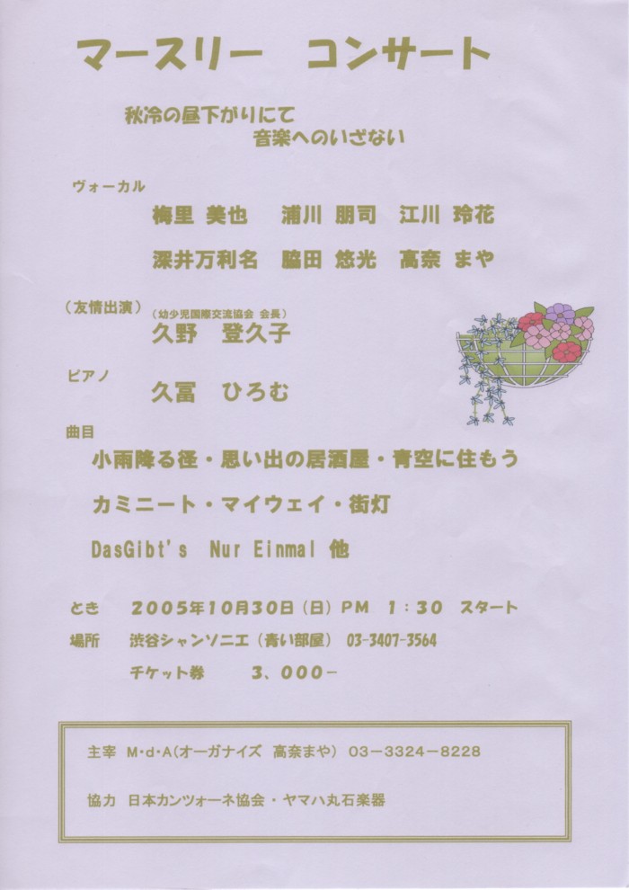 「青い部屋」マースリー コンサートのお知らせ