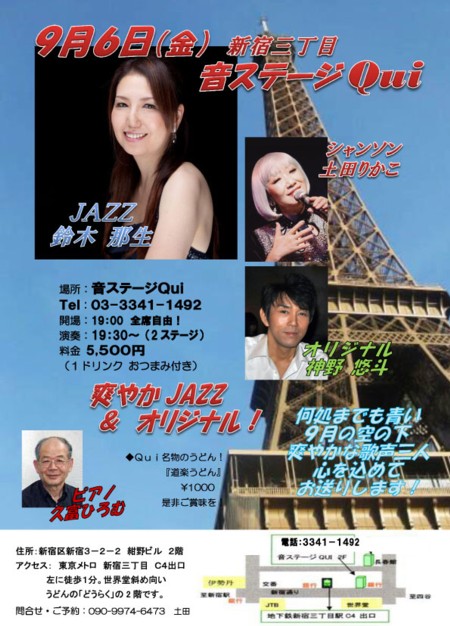 6日(金)ライブ出演・音ステージ Qui・りかこ、鈴木那生と悠斗・唄えます(楽譜持参)19:30[地図](新宿・03-3341-1492)応援をよろしくお願いします。